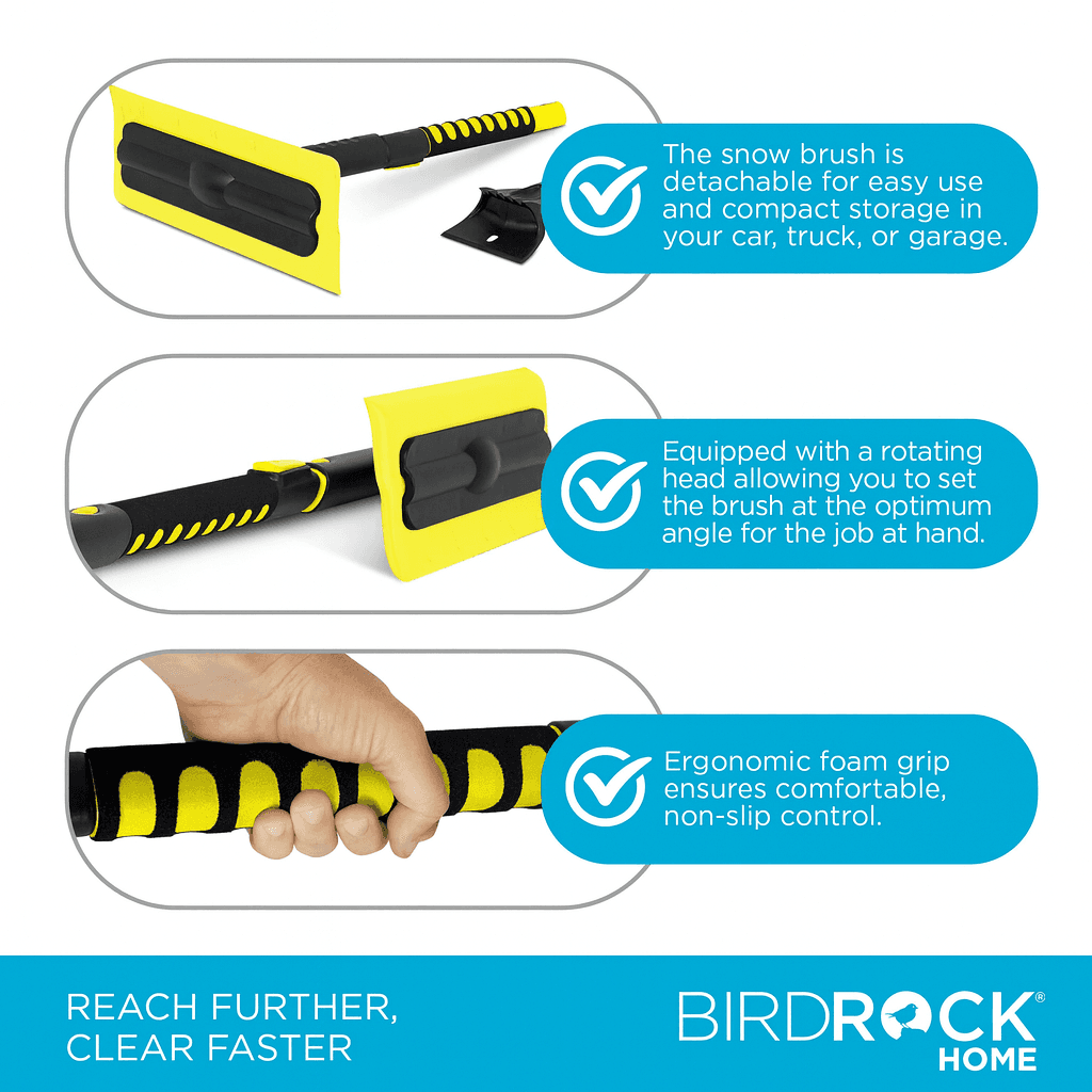 Get ready for the next snow storm with the Snow MOOver 2pc Snow & Ice Removal Bundle. The 55" Extendable and Ice Scraper with Foam Grip is the perfect snow brush solution that will be durable enough to hold up in any weather. Equipped with a rotating head allowing you to set the brush at the optimum position. The snow brush easily removes snow and ice from car windshield, top and hood.